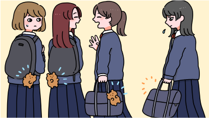 いじめには、暴力や悪口など見てすぐ分かるものだけでなく、こうした「ほのめかし」から発展するものもあるのかもしれません。本教材をとおして、「ほのめかし」に関するコミュニケーションの問題について考えてみてほしいです。